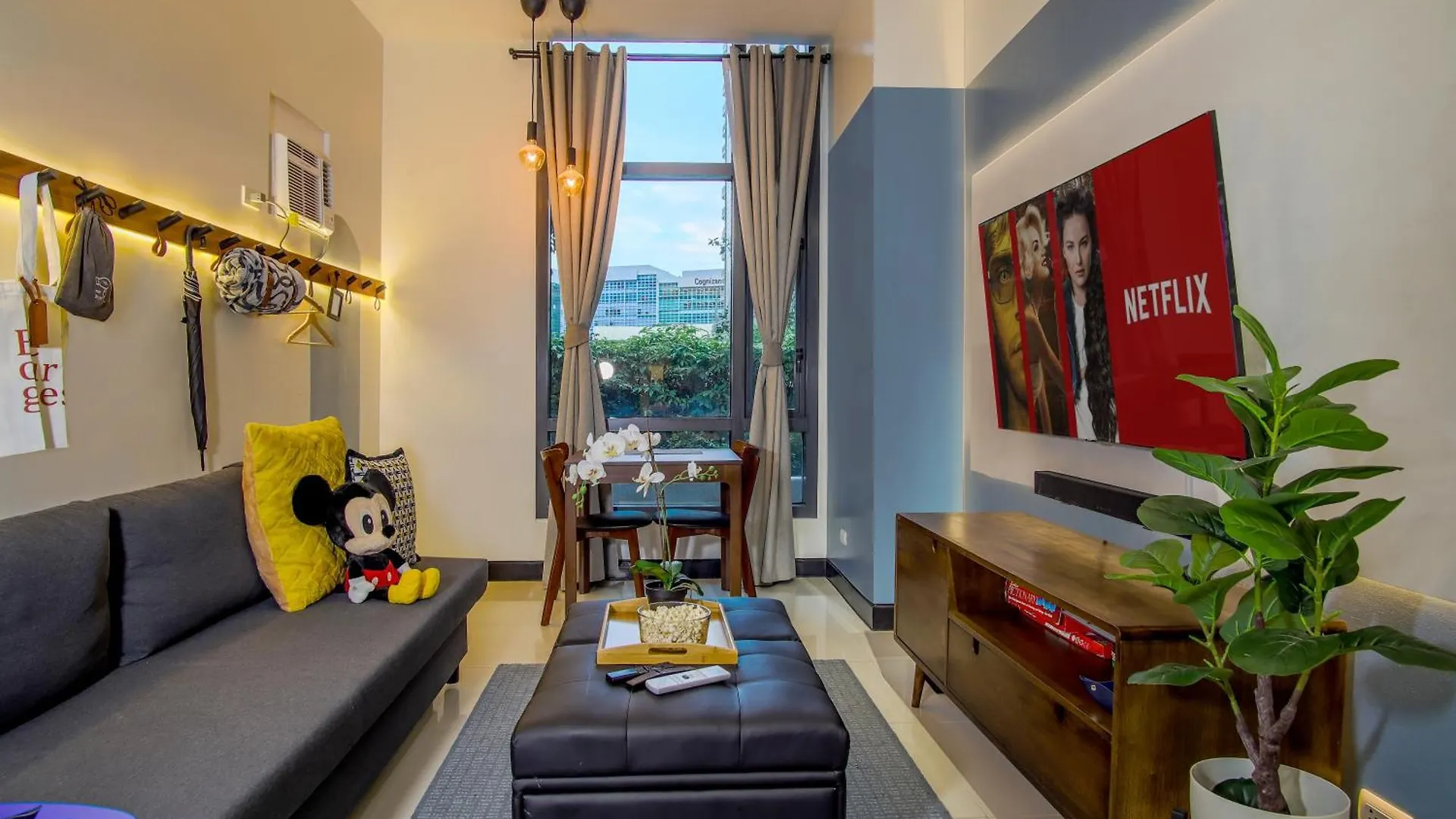 El apartamento cuenta con una terraza y una zona de estar, y comodidades como climatizador. El apartamento Vintage Mickey Disney Stay In Bgc -200Mbps Wifi ofrece 1 dormitorio. Hay 1 cuarto de baño en este alojamiento. Además, encontrarás un bidé y una ducha.